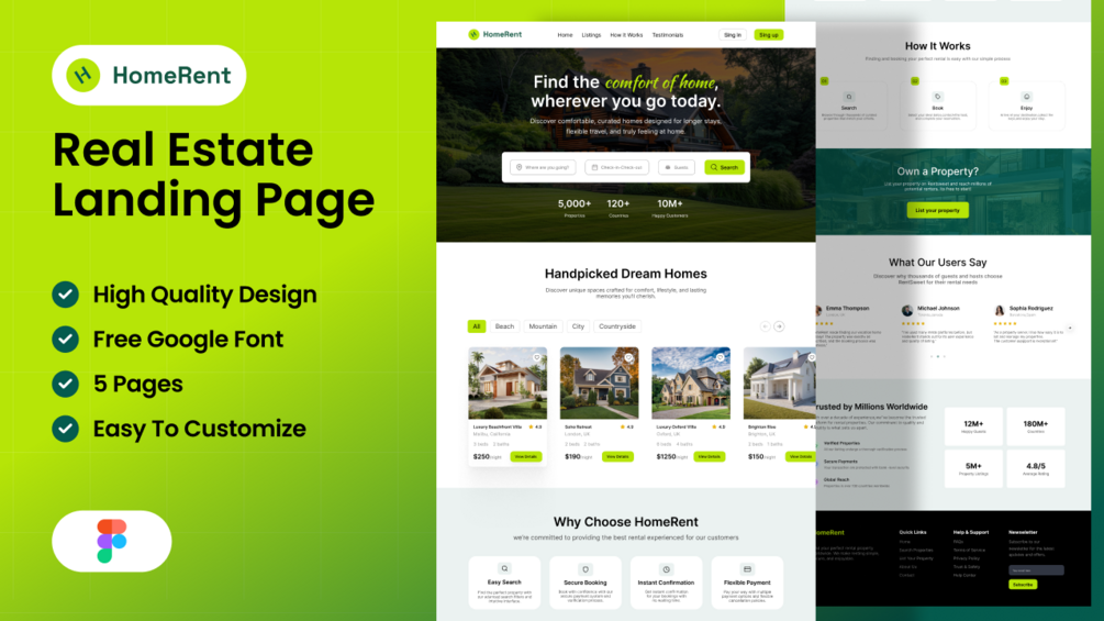 Present properties with style and clarity using this clean, modern Real Estate Property Landing Page UI Kit. Designed for high-conversion and premium user experience, this kit helps real estate agents, developers, and designers showcase listings, highlight features, and drive inquiries effortlessly.